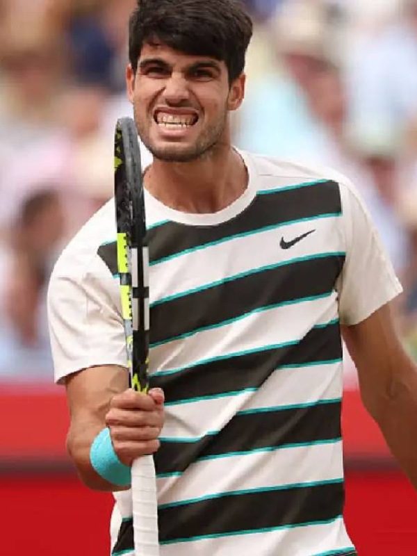Carlos Alcaraz 2025 Queen’s Club Final Black & White Stripe T-Shirt