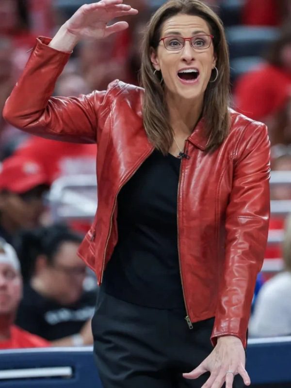 2025 WNBA Playoffs Stephanie White Red Leather Jacket