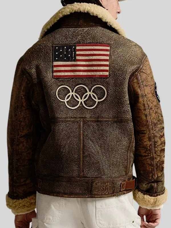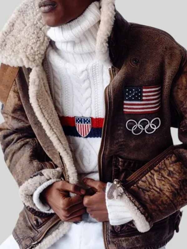 Re-Creation – 2026 Winter Olympics Opening Ceremony Usher Brown B3 Shearling Leather Jacket