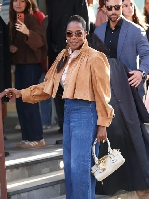 2026 Oprah Winfrey Paris Fashion Week Crop Suede Jacket