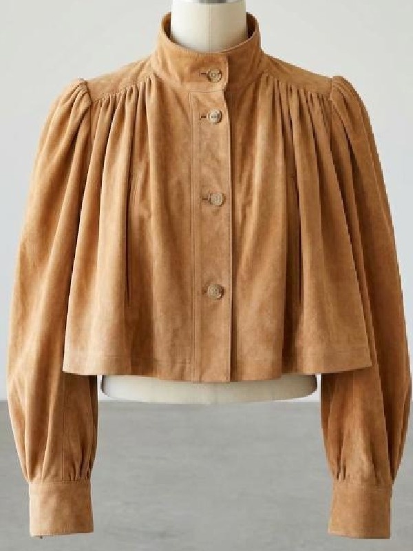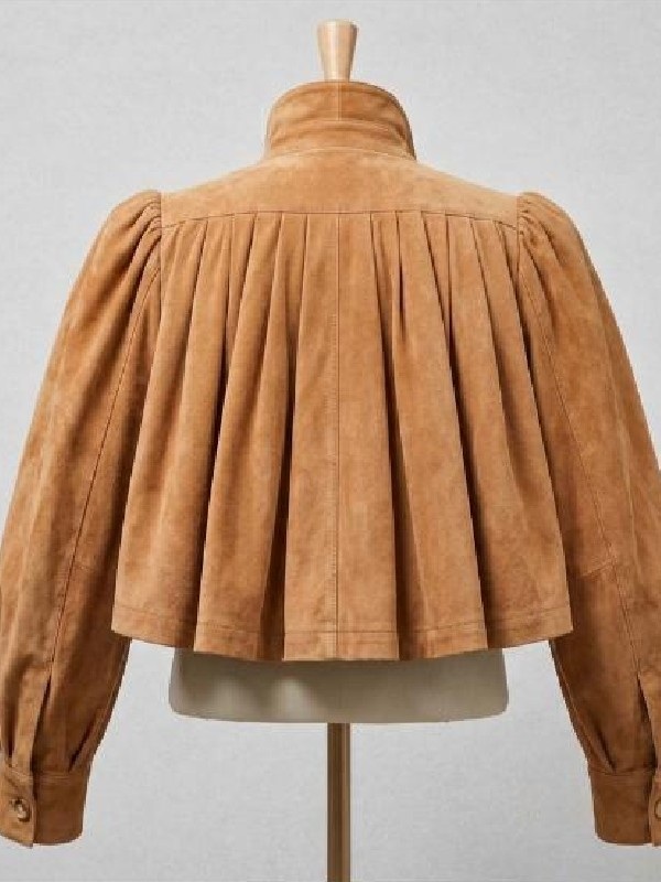Oprah Winfrey Paris Fashion Week 2026 Brown Pleated Crop Suede Jacket