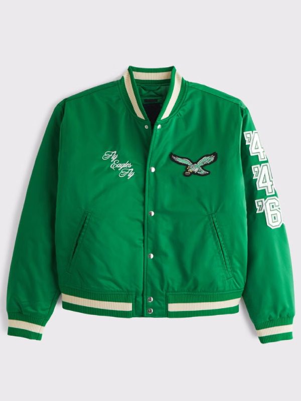We all love the NFL.It is an emotion and if you love this sport then you must also have a favorite. Side. Moreover, even if you don’t want to connect with this tournament somehow this is why we bring you the Abercrombie Eagles Green Satin Bomber Jacket. This article has the sporty touch and is very densely detailed. Furthermore, it has the Eagles Logo to attract the Philadelphia Eagles fans. So what are you waiting for to get this arGet into the team colors and support your side in style by wearing the Abercrombie Eagles Green Satin Bomber Jacket. Get yours now act fast.