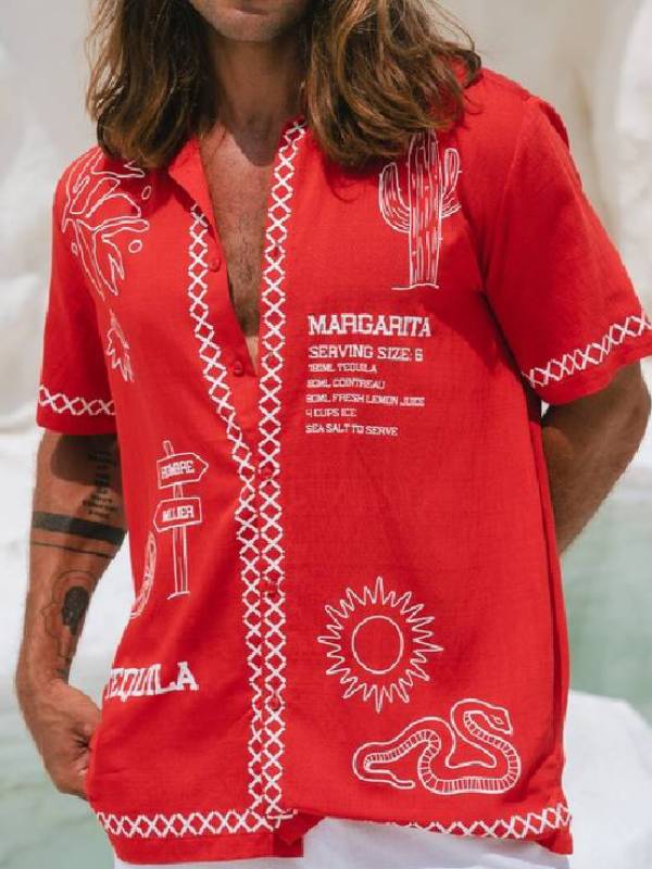 Aussie Shore Callum Hole Red Embroidered Shirt