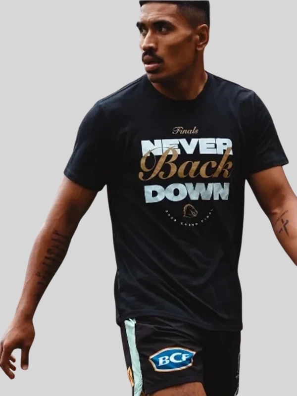 Brisbane Broncos 2025 Training Session Never Back Down Black T-Shirt