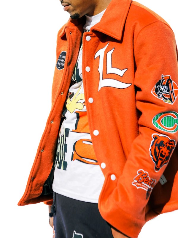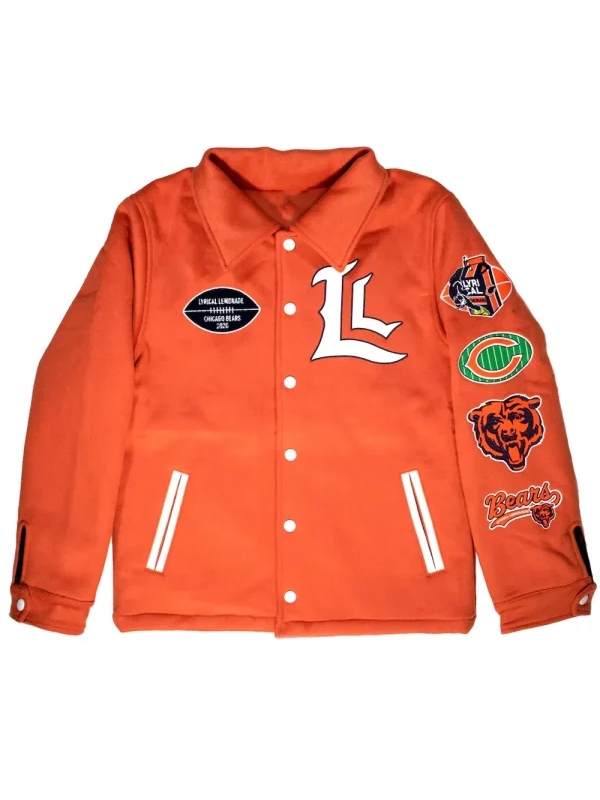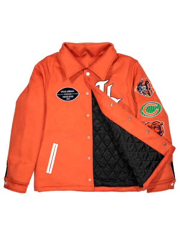 The Chicago Bears Lyrical Lemonade Orange Varsity Jacket is now available. A fusion of modern styling and a heritage of sports makes it a true statement piece. While its vibrant orange, and the attractive patches catch every individual attention and it gives you confidence and increases your self-esteem in just one go. Moreover, the Chicago bears display the fearless attitude, energetic vibe and a touch of artistic beauty.