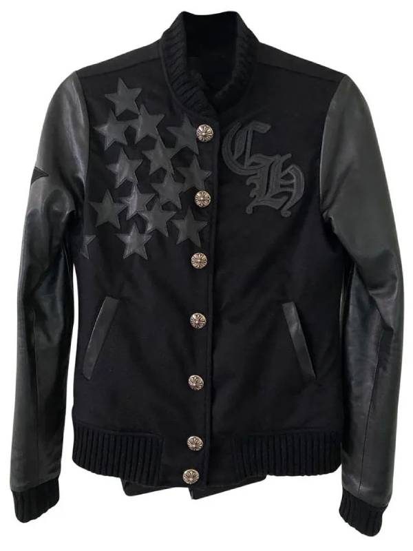 Mens Chrome Hearts CH Black Varsity Letterman Wool/Leather Jacket