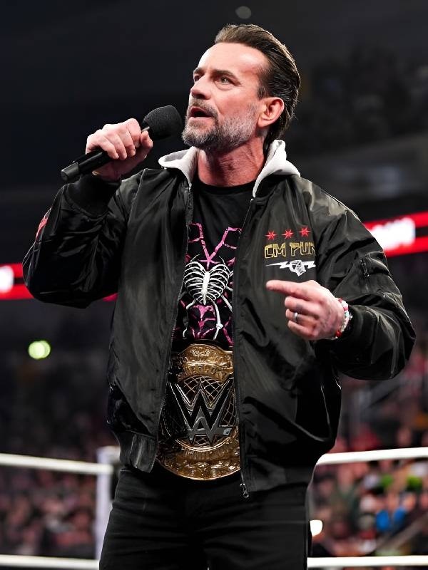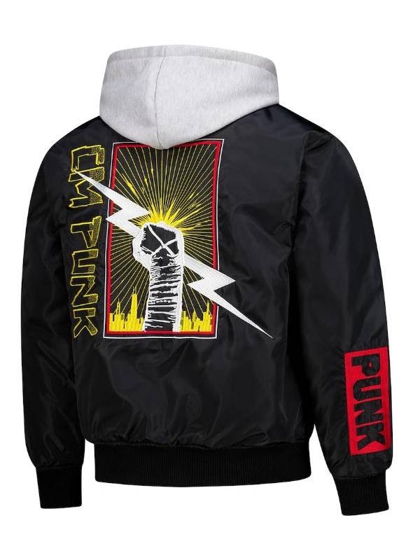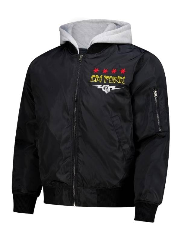 CM Punk Black Hooded Bomber Zip-Up Jacket
