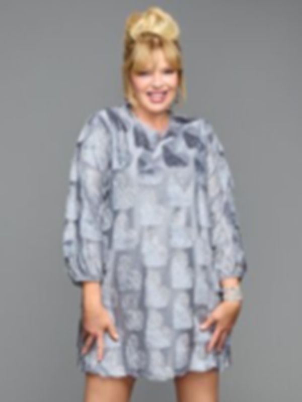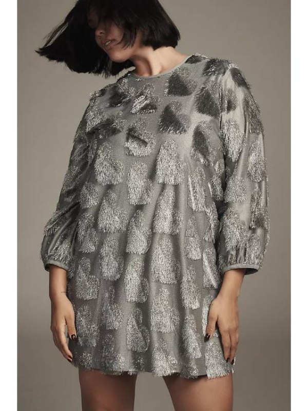 A dazzling hot couture is here straight out from Finding Mr Christmas S02. Don’t let your spark dull as Finding Mr Christmas S02 Melissa Peterman Hearts Texture Mini Dress is out now! It is not just a celebrity outfit, but a fashion statement that goes beyond trends. Moreover, silver texture detailing adds a soft shimmer effect, which stunningly enchants the entire mini dress. Also, its baggy silhouette balances charm, and boldness, enhancing a graceful personality.