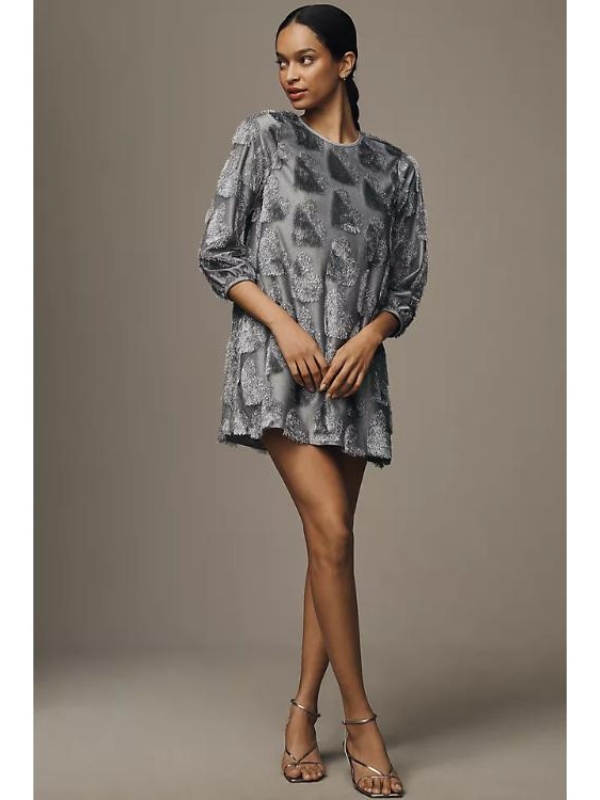 Finding Mr Christmas S02 Melissa Peterman Hearts Texture Mini Silver Dress
