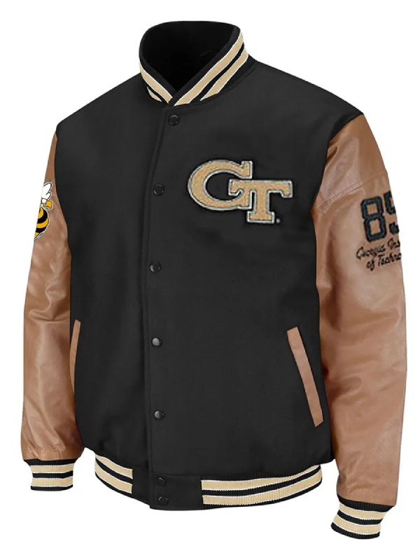 Recreated – Georgia Tech GT Black/Brown Varsity Full-Snap Wool/Leather Jacket