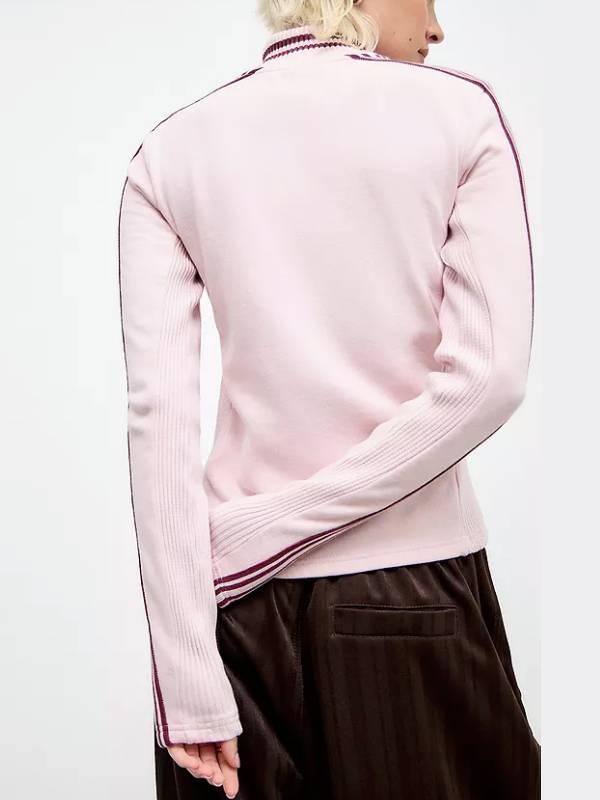 Furthermore, its tailored structure creates a perfect body fit and turns yourself into a smart individual. Invest your money on this worthwhile piece as it can easily go on casual errands. You can wear this track jacket on morning jog, gyming, hiking, or even on casual go out. So, maintain your personality even in off duty moments. Shop the Girl Taken Season 01 Pink Striped Sleeve Zip Track Jacket, a minimal effort that creates a bold statement.