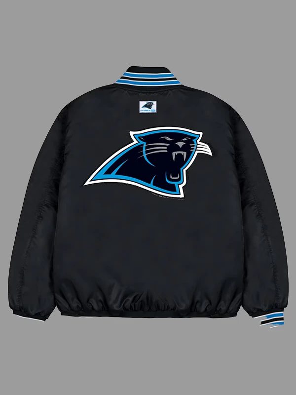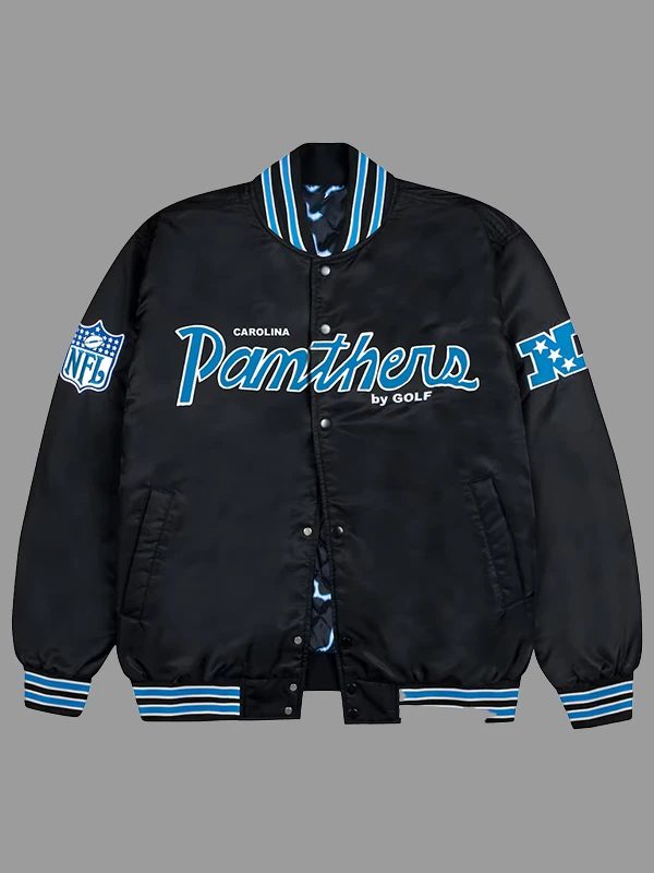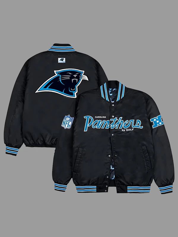 Carolina Panthers GOLF WANG Black Satin Full-Snap Bomber Jacket