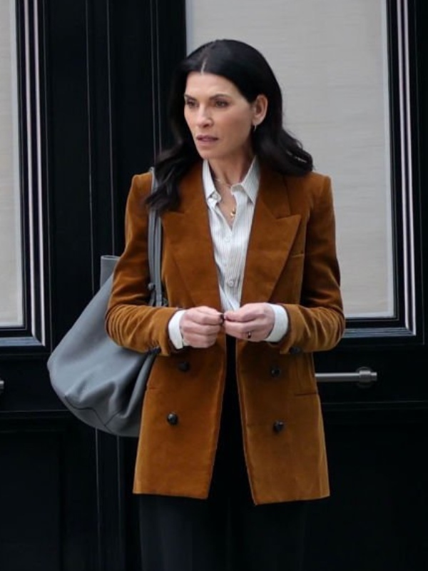 A gorgeous Julianna Margulies was spotted in the corduroy coat, delivering confident, smart, and strong individuality. The Jacketary made it possible, bringing this outfit to all the fashion-forward individuals. The Julianna Margulies Morning Show S03 Corduroy Coat is ready to enhance the bossy attitude. Moreover, the article captures the 90s aesthetic, modern elegance, which never loses its charm! In addition, the outfit was snapped at the drama series “The Morning Show”; her appearance inspired every woman. Also, the outfit comes in precise tailoring, delivers a defined look, and evokes a sense of the individuality that conveys women’s empowerment.