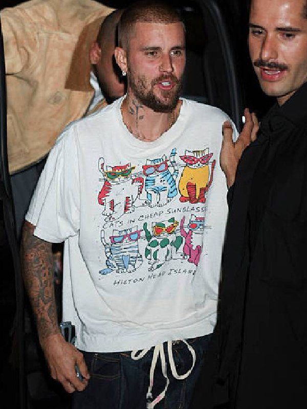 Ever since his first song came out the world has been calling out his name. Justin Bieber is a generational singer who is admired by his fans. However, apart from his songs his fans like what he puts on. Moreover, one of his recent hit styles is the Justin Bieber Cats Graphic White T-Shirt. You can wear it with your go-to jeans and trousers and embody his class.