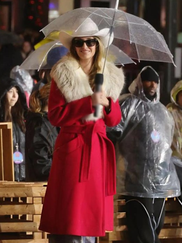 Moving on. If we look at the design of Lainey Wilson 2025 Macy’s Thanksgiving Day Parade Fur Trim Red Coat it is stitched with wool blend fabric and has a soft texture. On the other hand, this coat has deep sized pockets that lift its overall functionality. There is no need for a second thought to get this apparel now.