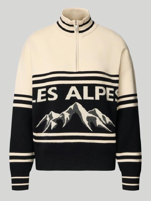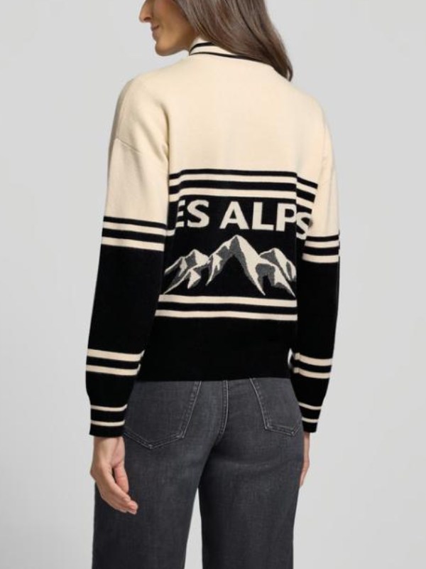 Recreated – Les Alpes Funnel-Neck Black & Cream Pullover Knit Jumper