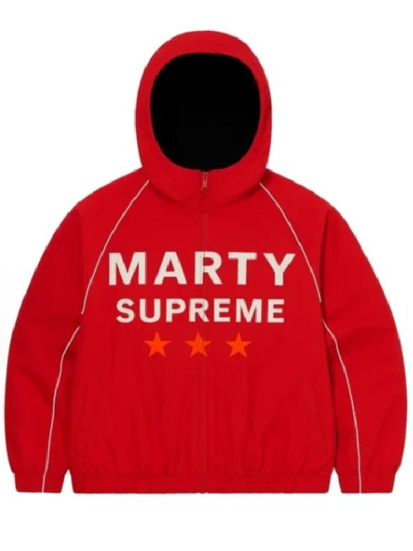 Timothée Chalamet Marty Supreme 2025 Red Hooded Jacket