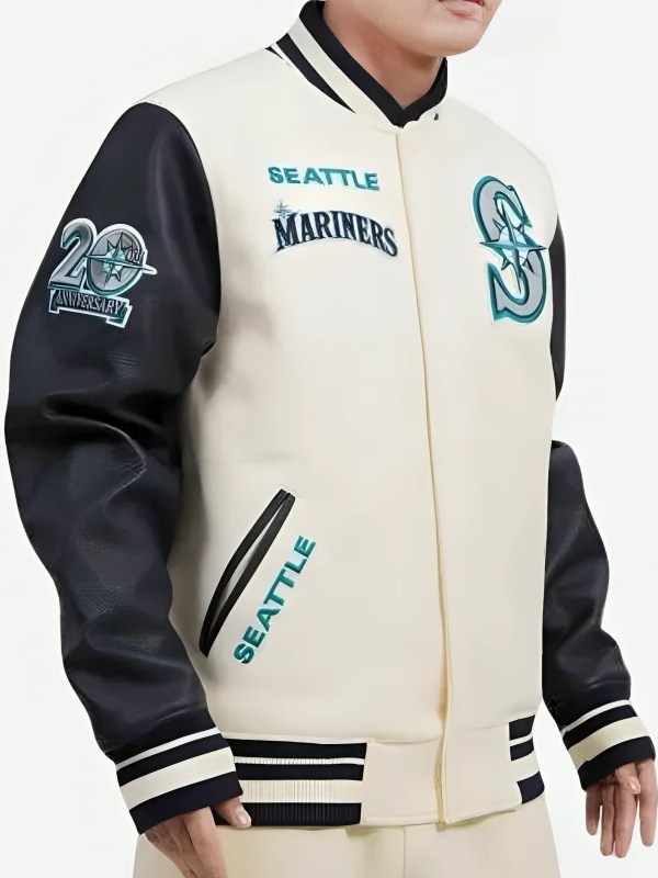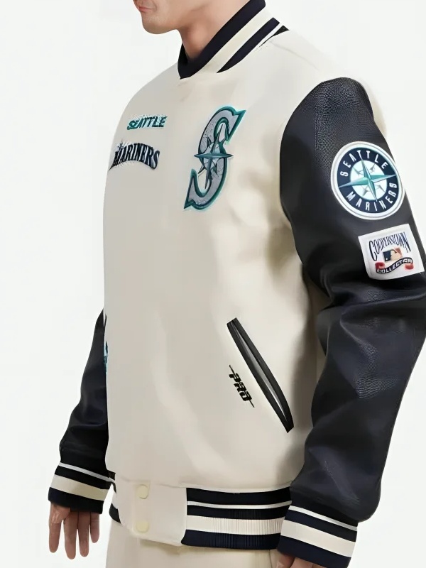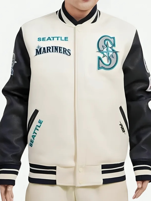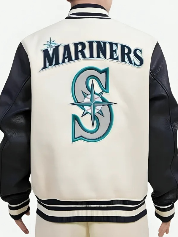 Recreated – MLB Seattle Mariners Retro White Wool & Black Leather Varsity Jacket