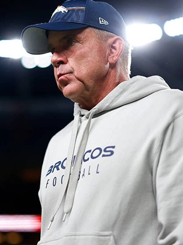 Recreated – Coach Sean Payton Denver Broncos 2025 Grey Fleece Pullover Hoodie