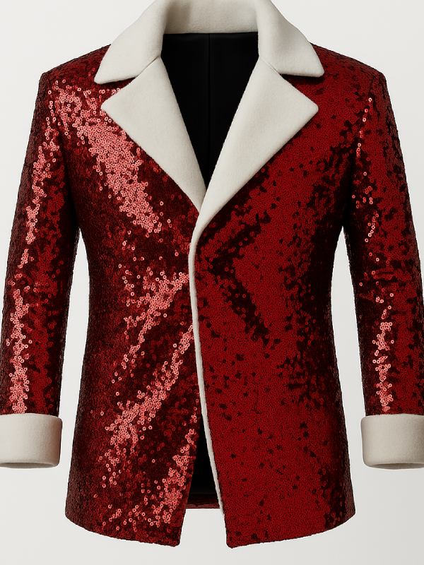 Mens Santa Claus Sequin Red Christmas Blazer Coat
