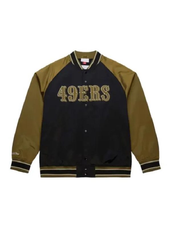Mitchell & Ness San Francisco 49ers Double Clutch Raglan Olive/Black Satin Jacket