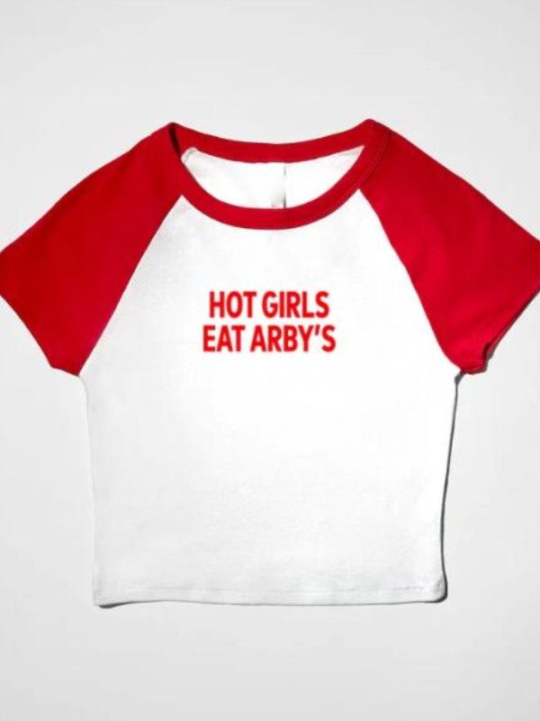 Sophie Cunningham Hot Girls Eat Arby’s Red & White Printed T-Shirt