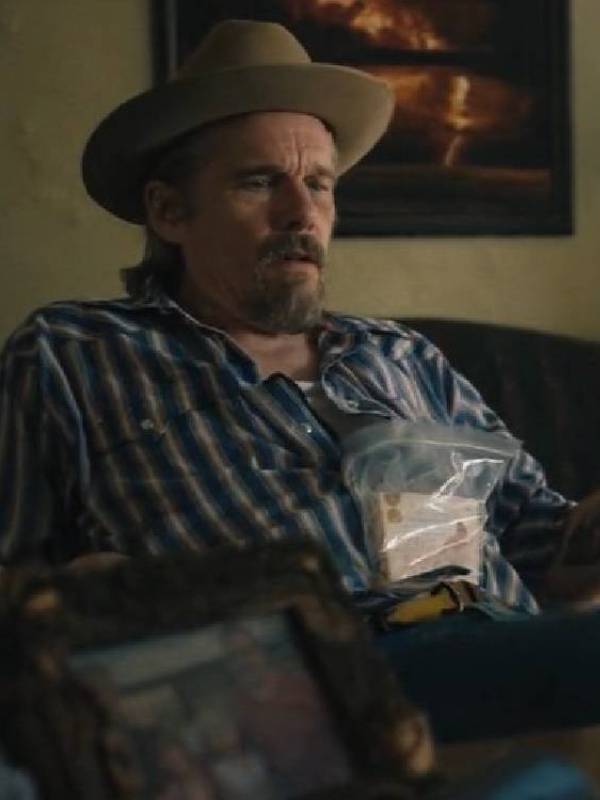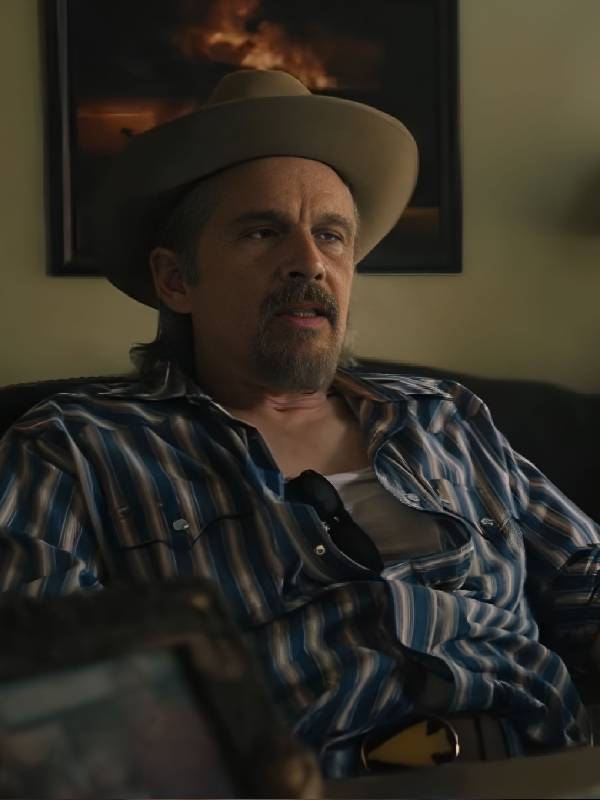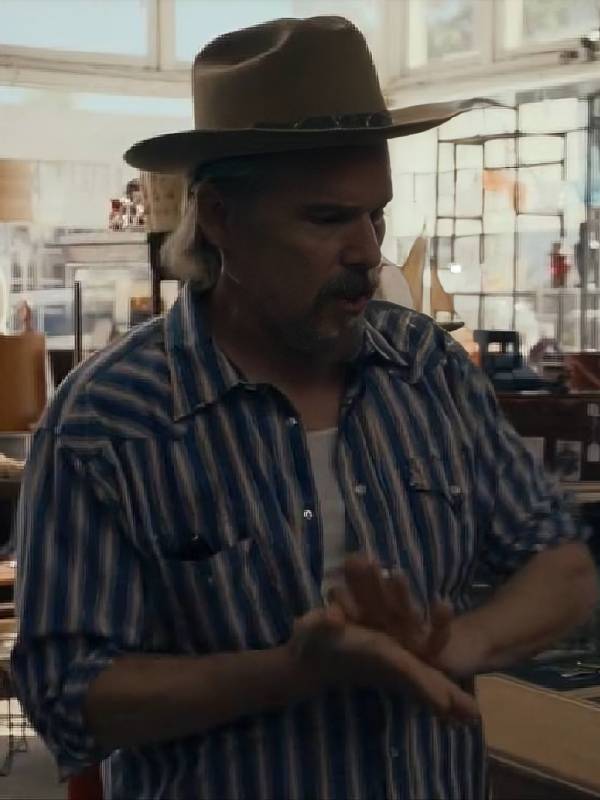 The Lowdown 2025 Ethan Hawke Blue Striped Shirt