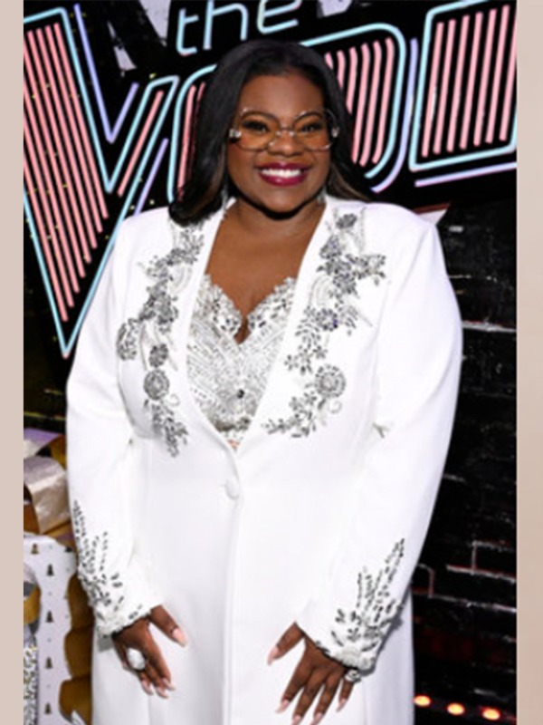 The Voice Season 28 Jazz McKenzie White Embellished Coat