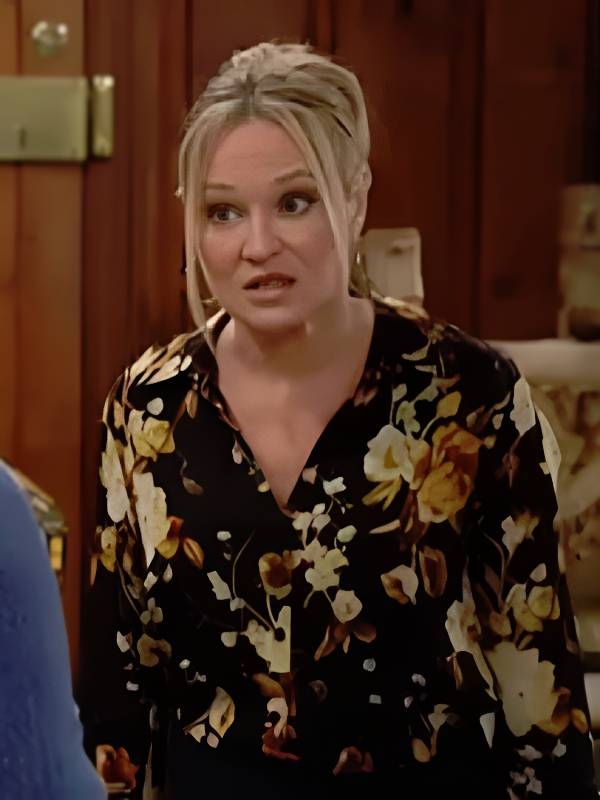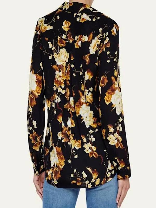 The Young and the Restless Sharon Newman Black and Yellow Paisley Satin Wrap Top