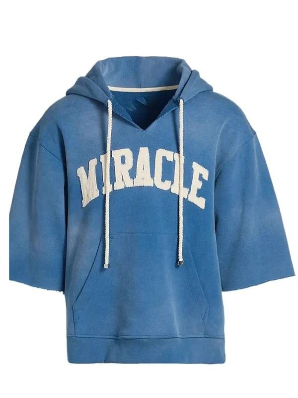 In the dynamic tournament of NFL there are various teams and sides to watch out for. However, if you are a KC Chiefs fan than you might also like Travis Kelce. He’s now doubt one top and impactful player. Likewise, other than his on field personality he is known for wearing cool style the recent example is the Travis Kelce Miracle Cut Off Hoodie in Blue. It is a cool and relaxed style that has kept the fans at bay. Moreover, looking at the design the Travis Kelce Miracle Cut Off Half Sleeves Blue Hoodie is stitched with fleece material and has a light weight fit. On the other hand, this outerwear comes with a kangaroo pocket for added style and comfort. So don’t just sit there get this in your wardrobe.