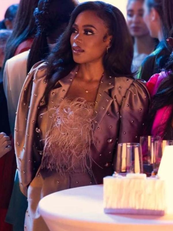 Lets go ahead and focus on the over the top aspects this jacket brings. The Joy Tyler Perry’s Finding Joy 2025 Shannon Thornton Pearl Studded Puff Sleeves Cropped Blazer. This outerwear is fashioned with suiting fabric and has a bold and dynamic look. Likewise, it is offered to you in various sizes so get this now. You can wear it to special get to gathers so make your parties colorful.