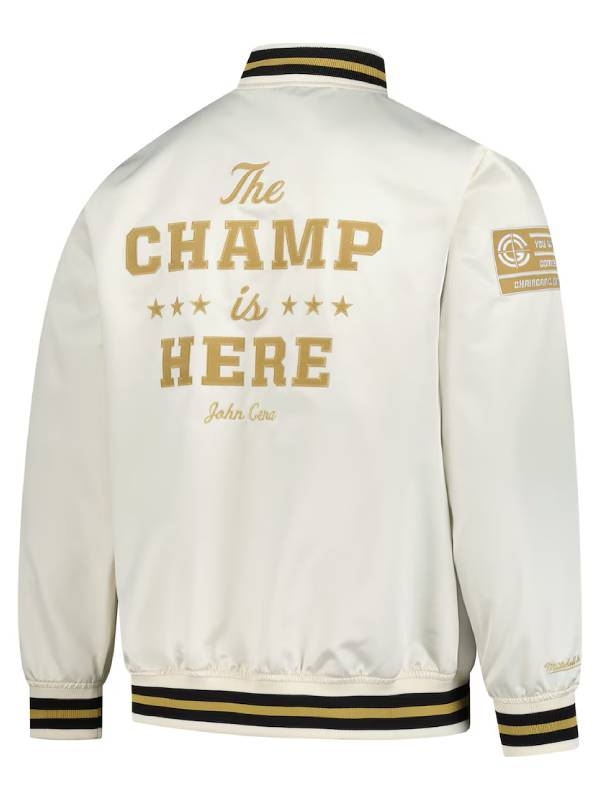 Recreation-WWE John Cena The Champ Is Here Sublimated Satin Bomber Jacket Cream